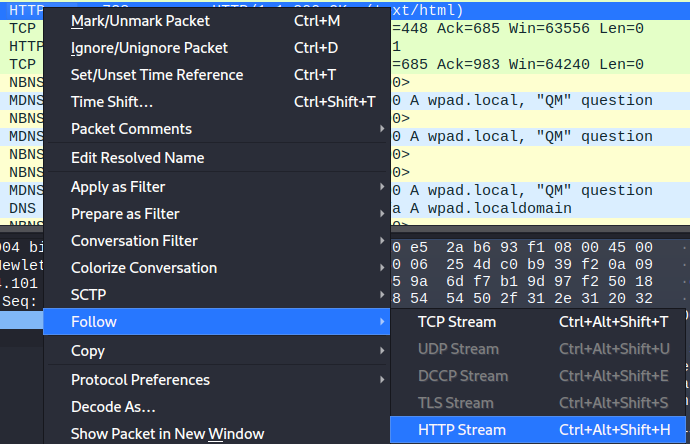 Hương vị đầu tiên và được thấy nhiều nhất là một network capture điển hình. Đây là những capture lớn với flag được ẩn trong một packet duy nhất có thể chứa html traffic. Điều này thường có thể được nghĩ như việc tìm kim trong đống cỏ khô.