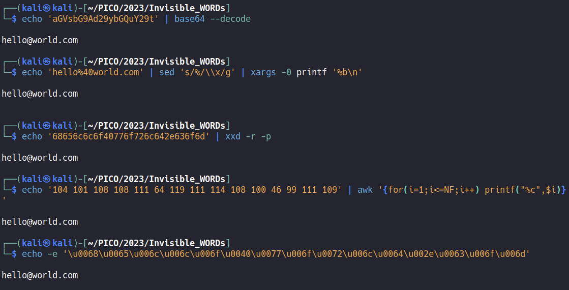 Unicode Encoding: "\u0068\u0065\u006c\u006c\u006f\u0040\u0077\u006f\u0072\u006c\u0064\u002e\u0063\u006f\u006d"